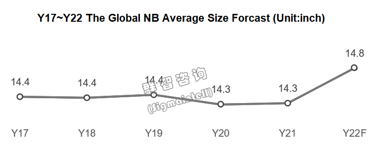 在经历疫情洗礼后,需求推动的新形态变革、分辨率升级和刷新率多元化共同催生了笔记本电脑市场平均尺寸的增长;而不断增加的笔记本面板产能正在使笔记本面板市场竞争加剧,竞争的加剧又进一步推动面板厂商创新和升级产品的步伐。因此,群智咨询(Sigmaintell)预测,笔记本电脑面板的平均尺寸将于2022年首次突破14.5英寸,来到14.8英寸。