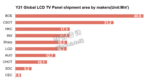TCL CSOT, the shipment volume in 2021 keeps stable at more than 40 million pieces, and shipment area will more than 30 million square meters. In 2022, CSOT will strive for stable TV business and actively expand its IT business in order to seek comprehensive development in various applications. In addition, regarding the product line in the LCD TV field, CSOT is more focused on large-sized products such as 55",65" and 75".