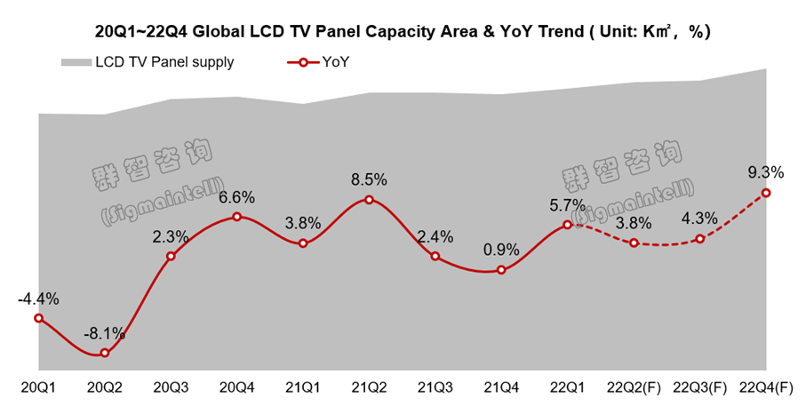 According to Sigmaintell's calculation data, under the premise of the above analysis, the global LCD TV panel supply area in the second quarter increased by 3.8% YoY and 2.2% QoQ, and the supply scale remained at a high level. Therefore, Sigmaintell believes that the reverse supply and demand will not last for a long time, and panel makers must reduce partially or structurally.