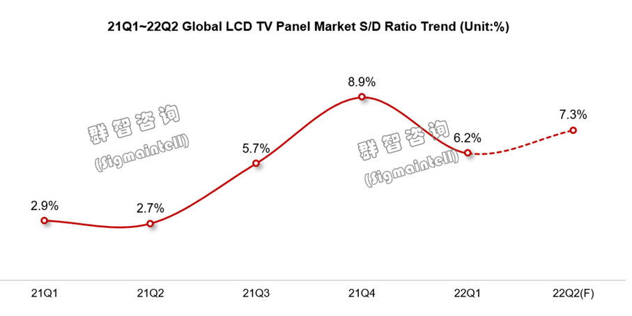 According to the data calculated by Sigmaintell's "Supply and Demand Model," in the second quarter, under the condition of end demand continues to slump and the supply side is still not effectively controlled, the global LCD TV panel market supply and demand ratio will reach 7.3% (area benchmark), sustained excess supply and demand. Panel prices maintain a downward trend, and expenses of various sizes may continue to decrease on a low basis, gradually breaking the cash cost by the end of the second quarter.