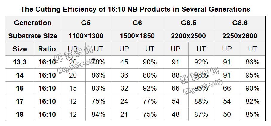 再次,新进面板厂商将迎来更多机遇。因16:10产品在小世代线切割效率较低,成本较高,这在一定程度上阻碍了相关面板商16:10产品开发进度。但随着高世代新厂线的投产,为16:10产品提供了稳定的产能供应,也为CSOT、Tianma等新进面板厂商提供更多的机遇。