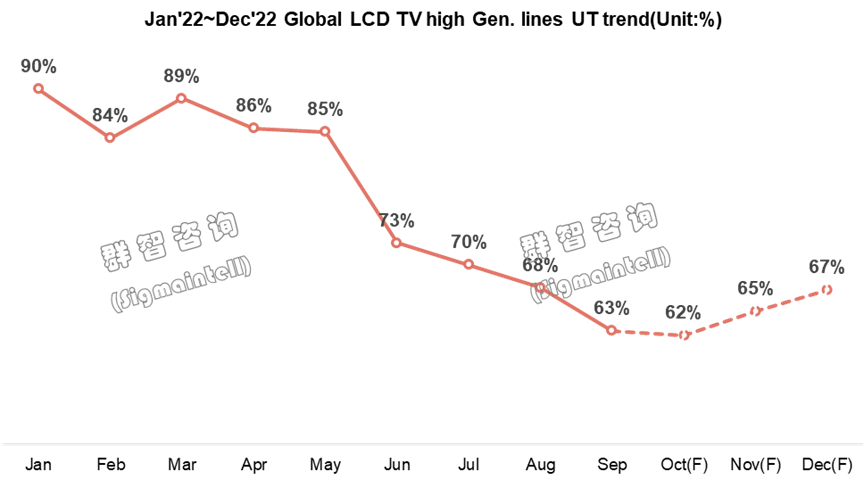 Capacity: Panel makers intensified production cuts, and the UT rate in Q4 was lower than 70%