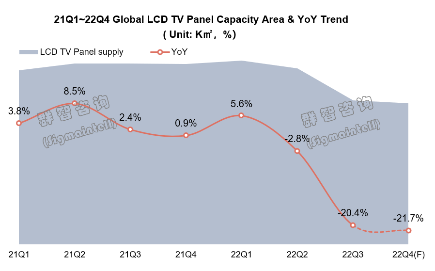 According to Sigmaintell's estimates, affected by the production cut of panel makers, the global LCD TV panel supply area fell sharply by 20.4% YoY in Q3 and maintained a significant decline of 21.7% YoY in Q4. In the short-term, panel makers reduce production to form an effective control over supply. Under the circumstance that the fundamentals of supply and demand have not fundamentally changed, top panel makers need to form a joint force to continue rational control of global LCD TV panel capacity in the future.