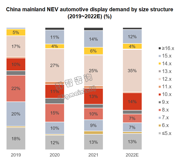Nearly 70% of automotive display’s size of China Mainland NEV demand are more than 10 inches, accelerating the increase in the size of automotive displays.