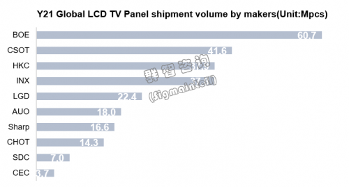 HKC has the largest increase in capacity. In 2021, the shipment scale is close to 40 million pieces, an increase of 31% YoY, surpassing Taiwanese panel makers to enter the top three list. In 2022, HKC will take the initiative to seek breakthroughs and enable itself more powerful in the supply of 55"+ large-sized panels by MMG program, especially to achieve leapfrog growth in the supply of 80"+ products. its size structure will be more complete, thus further enhancing customer stickiness.