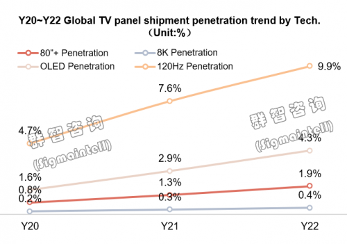 In recent years, with the rapid popularity of the gaming industry, gaming TVs have gradually been brought in front of public eyes, making it be one choices for game enthusiasts. As a result, top brands are actively launching corresponding TVs with high refresh rate, thus driving the continuous growth of high refresh panel shipment volume. Leading by global brands like Samsung, Sony, and LG Electronics, Chinese brands including Hisense are also positively formulating their plans, pushing the high refresh TV panel to upgrade from 60Hz to 120Hz or higher. At the same time, influenced by high-end products including OLED and Mini LED, the panel demand with high refresh rate is showing a steady growth trend. According to Sigmaintell, the 120Hz TV panel shipment volume will reach 21 million in 2021, an increase of 61% on YoY; and it is expected to increase to 27 million in 2022, a YoY growth of 30% and a penetration rate of nearly 10%.