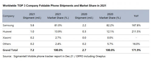 In 2021, Samsung canceled its Galaxy Note product line and shifted the focus of its highest-end flagship to the Galaxy Z series of foldable phones. Although Huawei’s shipments have decreased sharply due to external factors, to maintain its high-end image and its position in the foldable phone market, it has iterated the series of foldable mobile phones and released its first "clamshell-type" foldable smartphone P50 Pocket. Xiaomi entered the folding mobile phone market in March 2021 and released its first foldable smartphone Mix Fold, which lowered the starting price of folding mobile phones to less than 10,000 yuan. OPPO, Honor, and vivo have all accelerated the development process of their foldable smartphones. OPPO released its first foldable smartphone Find N at the end of 2021. In addition to the differentiated design, hinge, and crease control upgrades, the price has declined to ¥7699. According to the data from Sigmaintell, the global shipment of foldable smartphones in 2021 is about 7.21 million units, with a YoY increase of about 171.9%. The maturity of technology and the decline in prices drive the market of foldable smartphones to continue to heat up. With the further maturity of foldable upstream devices, set makers have also begun to pre-research various forms of smartphones.