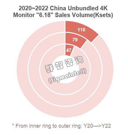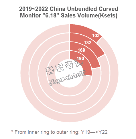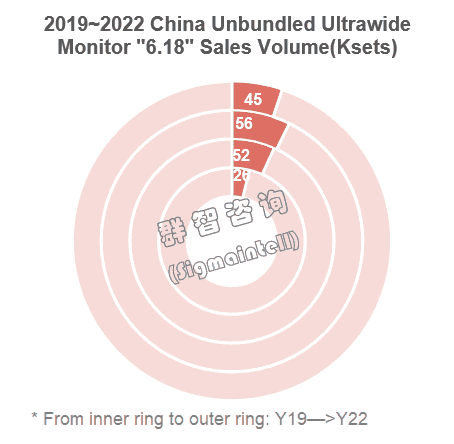 The unbundled ultrawide monitor market in this year's "6.18" delivered a surprising answer. Sigmaintell’s data show that 2022 "6.18" unbundled ultrawide monitor sales was only 45,000 units and the first YOY fall in recent years, about 17%.