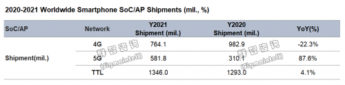 Although the construction of 5G base stations has slowed down, the general trend of upgrading smartphones from 4G to 5G has not changed. With the active promotion of operators, the coverage of 5G base station signals has become wider and wider, and 5G has gradually become the basic demand of consumers for new smartphones. According to Sigmaintell survey data, the global 5G SoC (including AP) shipments in 2021 is about 580 million, a YoY increase of about 87.6%. It is expected that 5G SoC shipments will continue to grow in 2022 as 5G smartphone prices decline. Global 5G SoC (including AP) shipments are about 760 million units, a YoY increase of about 30.6%, and 5G SoC shipments will surpass 4G SoC shipments for the first time.