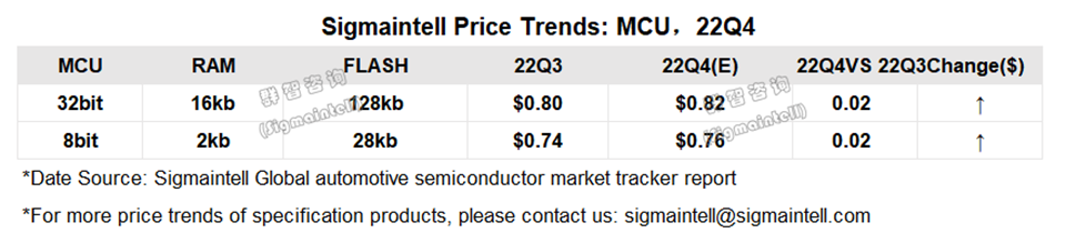 车用MCU:四季度涨幅收窄,预计2023全年价格难下行