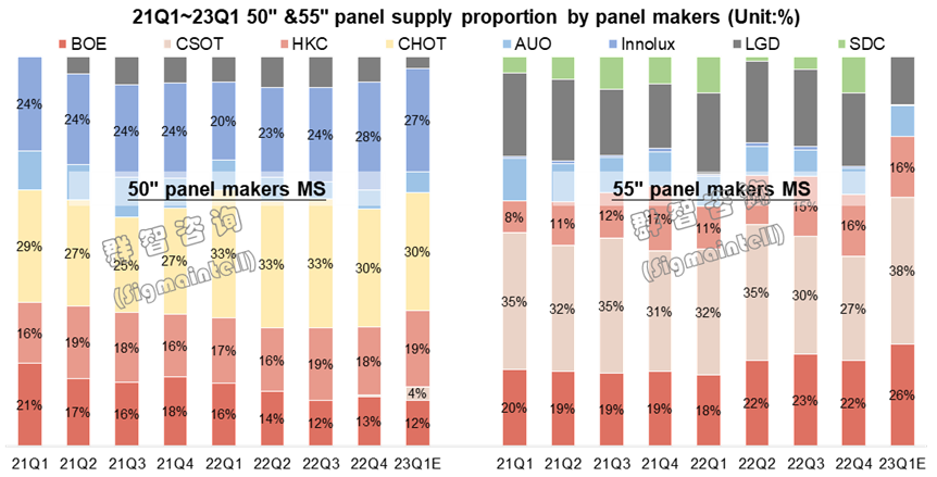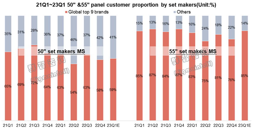 2) 需求端:55”以品牌布局为主,50”主要供应二线厂商