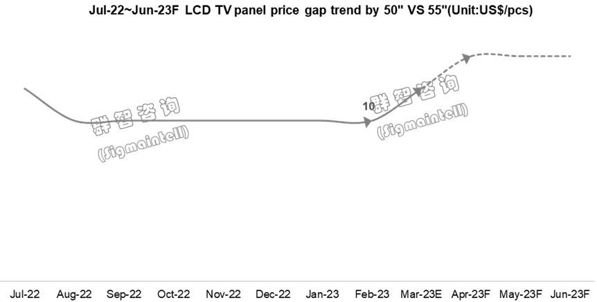 从供应端格局特点可以看出,55”面板厂商集中度更高,由此55”面板主导厂商话语权的“马太效应”明显强于50”面板。因此,在当前头部面板厂强势扭亏的策略之下,品牌厂商的博弈角色更加被动,55”面板价格短期涨幅高于预期。而50”面板市场供应厂商价格策略相对温和且调整节奏略有延时,二线品牌接受度更高的同时供需双方的议价能力较为均衡。尽管未来部分厂商基于盈利考量可能追平价差,但整体来看,55”与50”面板间价差有望逐步拉大,50”面板价格的相对竞争力增强。