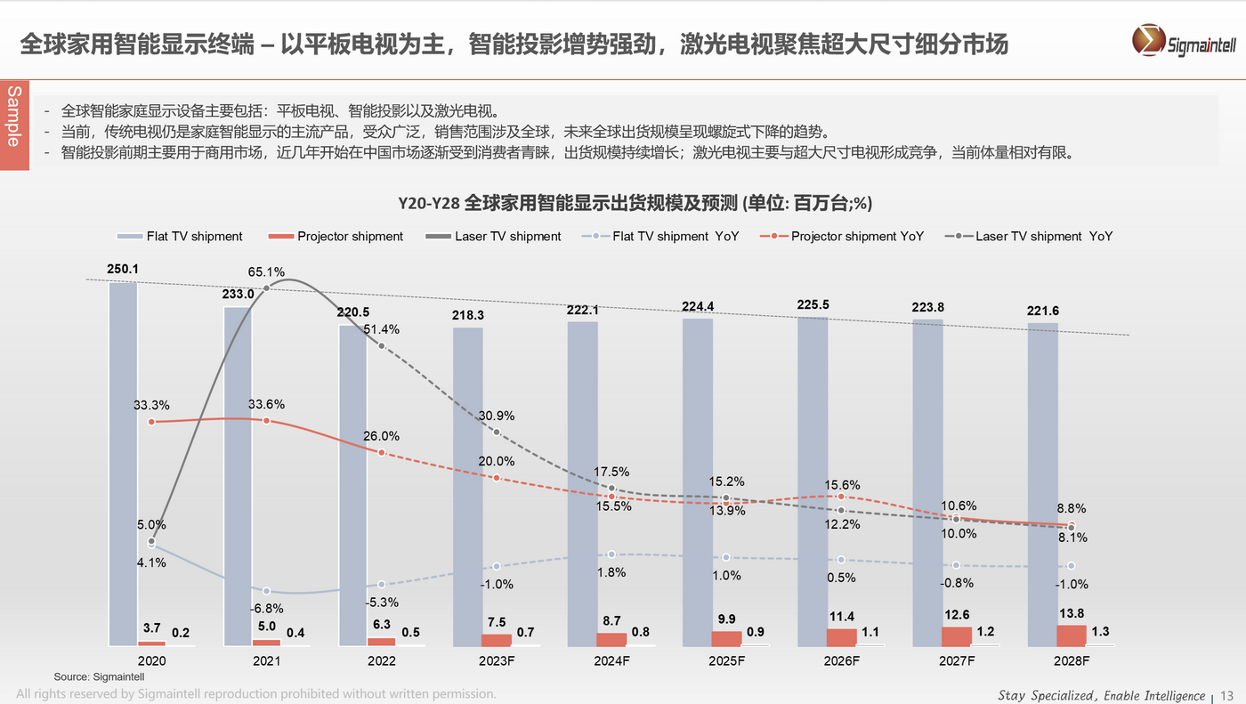 以下是群智咨询(Sigmaintell)《2022-2028年全球及中国智能投影及激光电视市场分析报告》摘录: